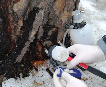 Служба СЭС по уничтожению короеда-типографа в Южноуральске.